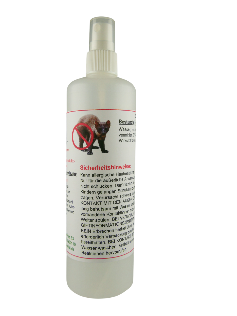 Private und öffentliche Haushalte, Innen- und Außenbereiche, Industrie, Lagerräume, Biotec Marderspray ist ein Repellent auf Duftölbasis zur Abwehr und Vertreibung von Mardern. Optimal geeignet für Dachböden, Garagen, Carports, Autos, Wohnwagen etc. Beugt einer erneuten Einwanderung durch Marder vor und entfaltet eine ca. 4 Wochen andauernde Schutzwirkung. Bei erneuten Aktivitäten der Marder die Anwendung wiederholen.
